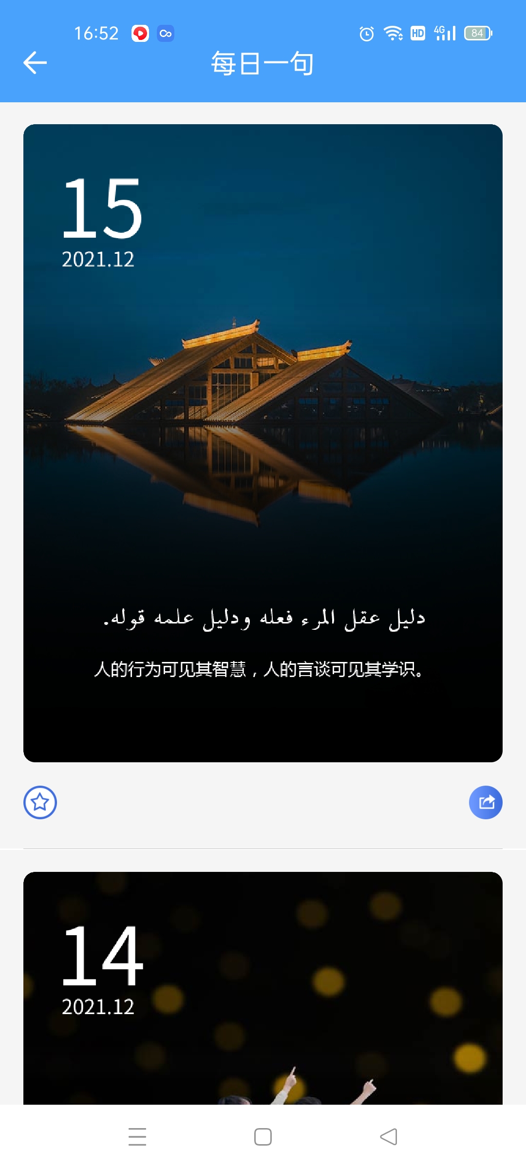 每日推送中阿佳句,分享心情,呈现美好。